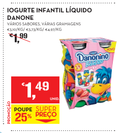 Iogurtes Danoninho leve 2 pague 1. Pode acumular com esta promoção os vales Danone de 0,40€ desconto.